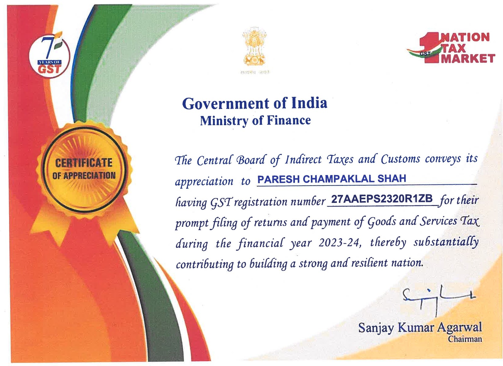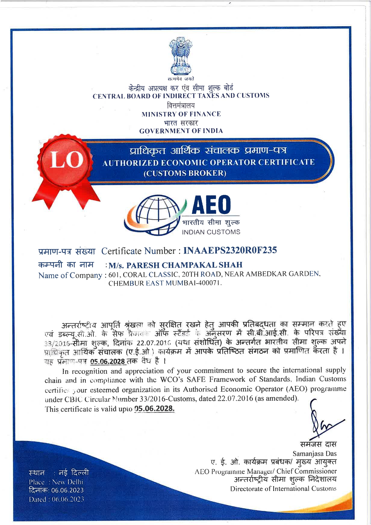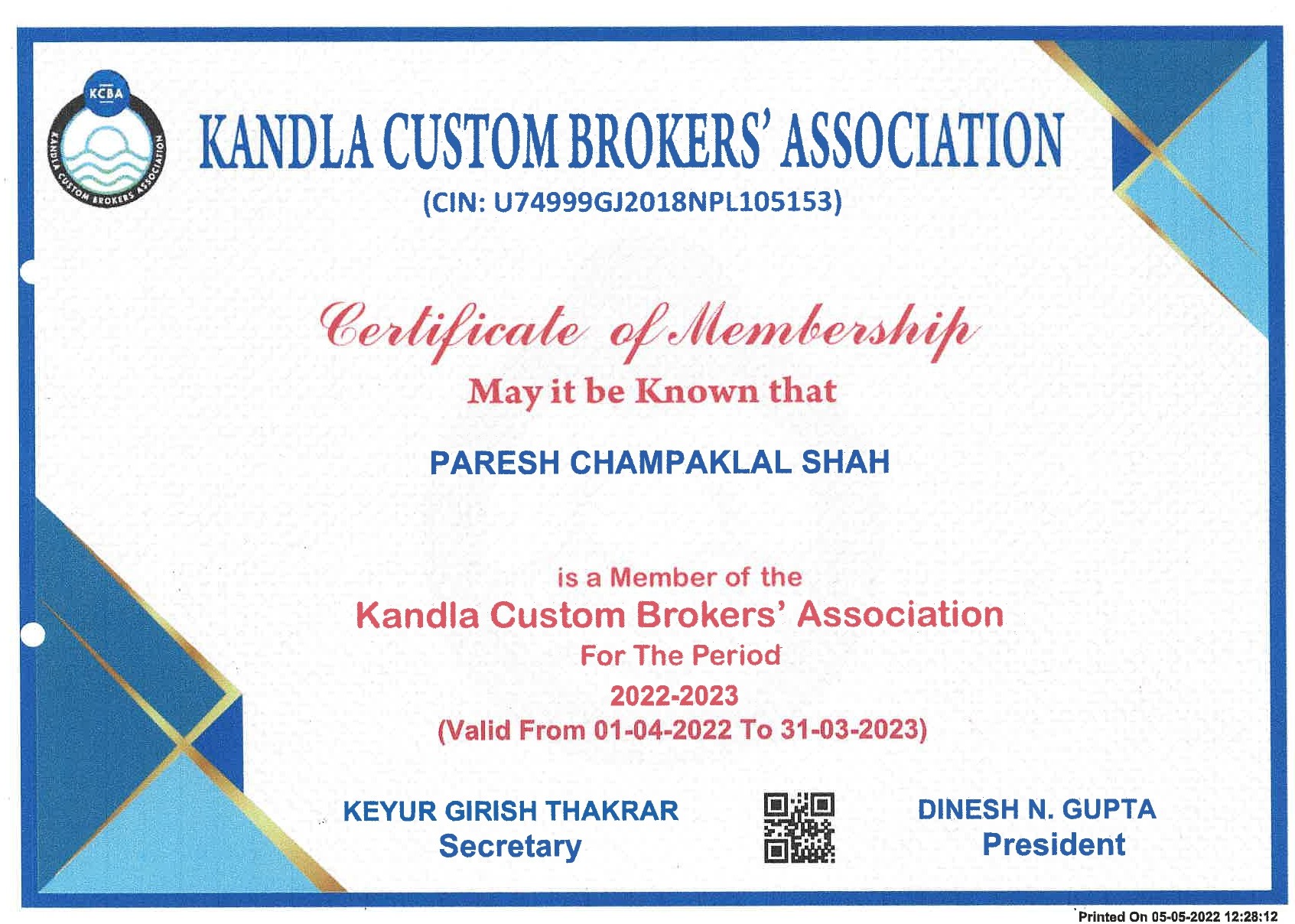 13, Parvathi Chambers, 2nd Floor, Plot No. 23, Ward No. 12/B, Gandhidham, Kutch – 370201 Gujarat, India.