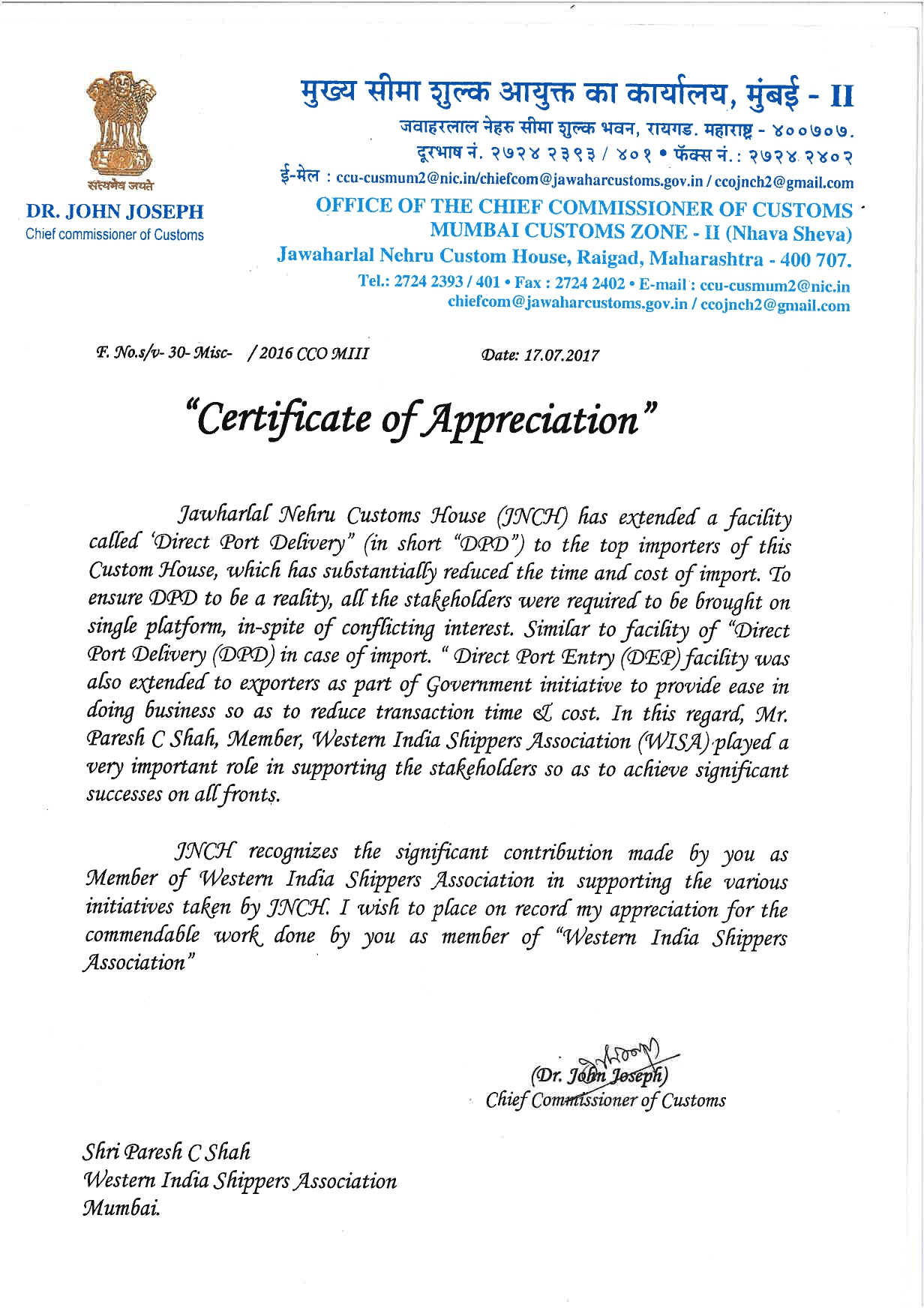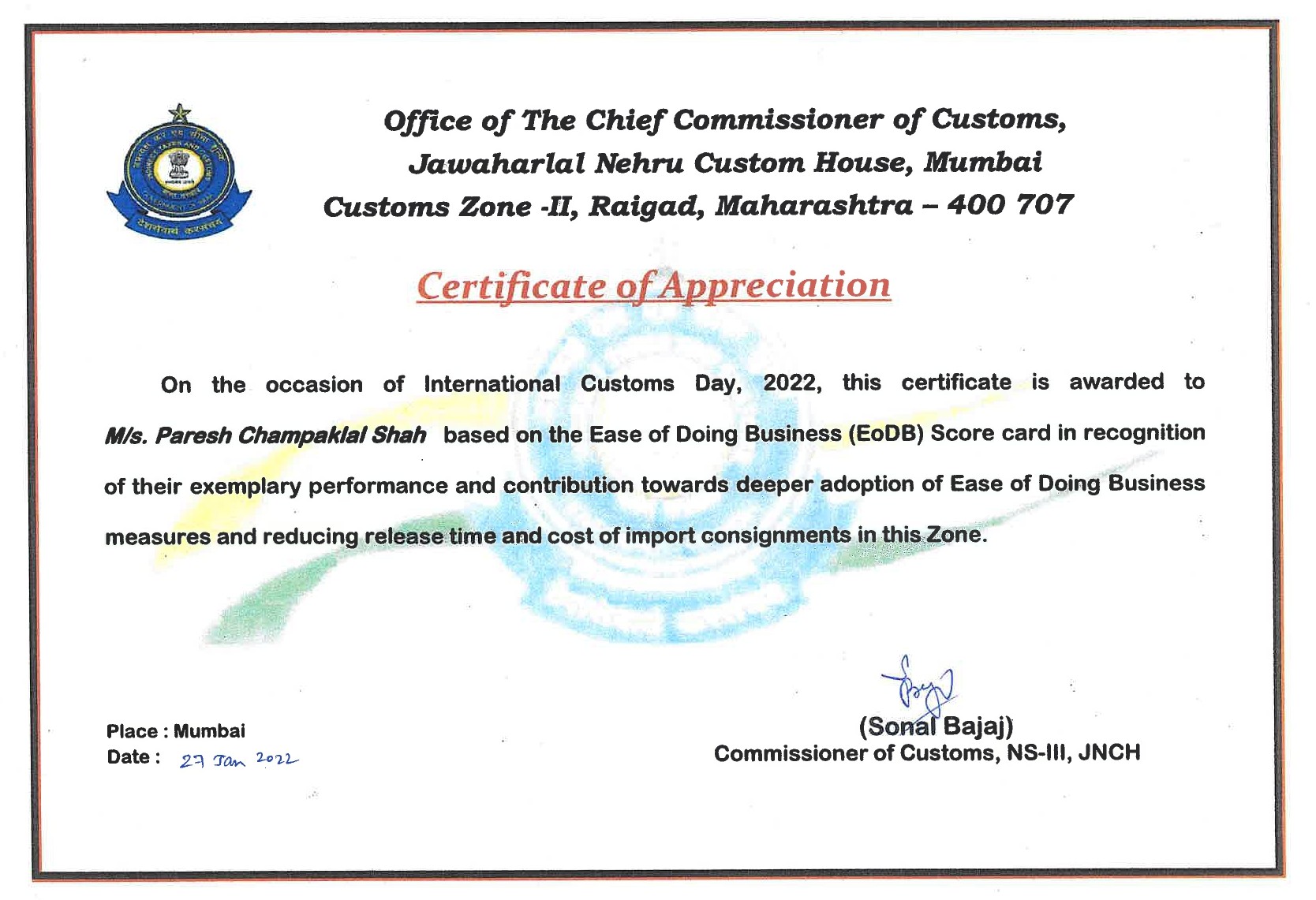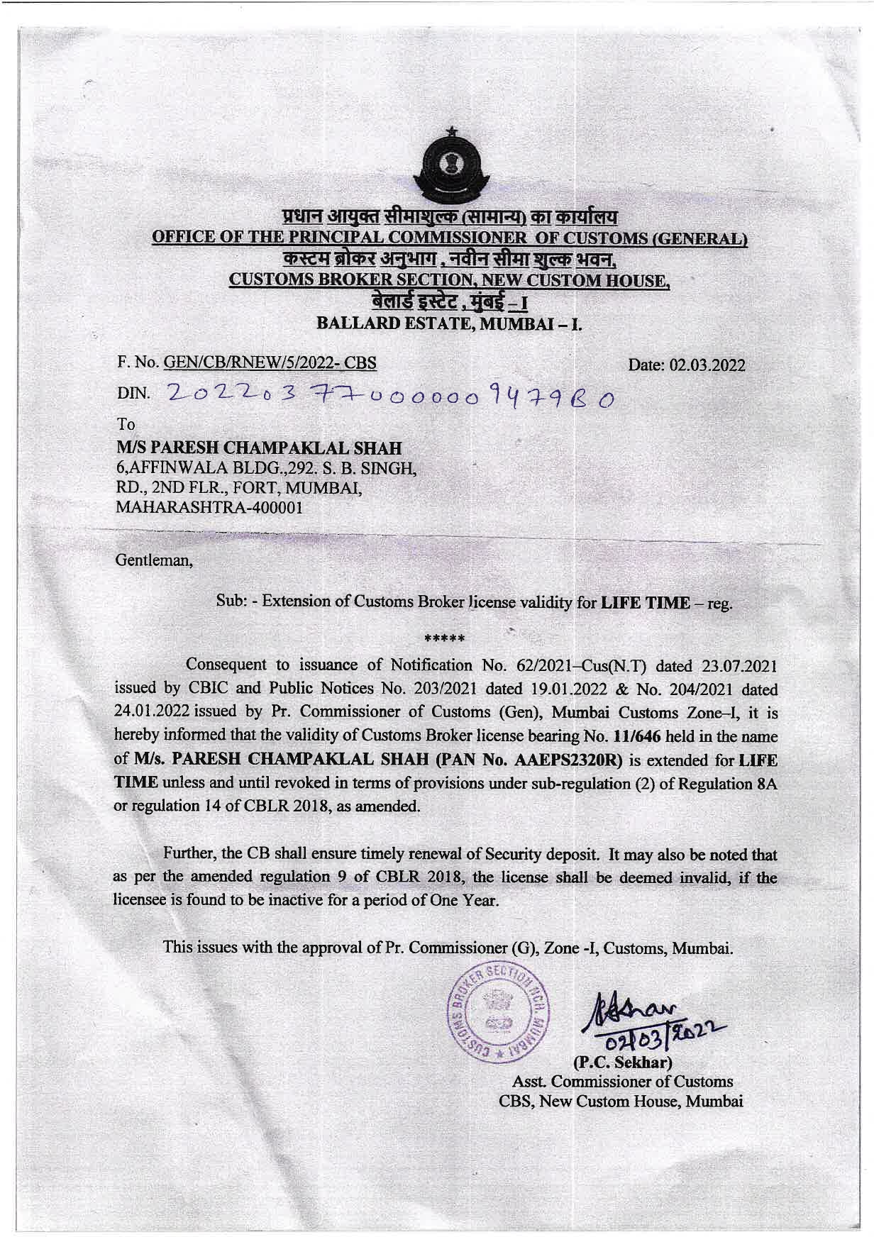 3rd Floor, Port User Building, Navi Mumbai – 400702 Maharashtra, India.