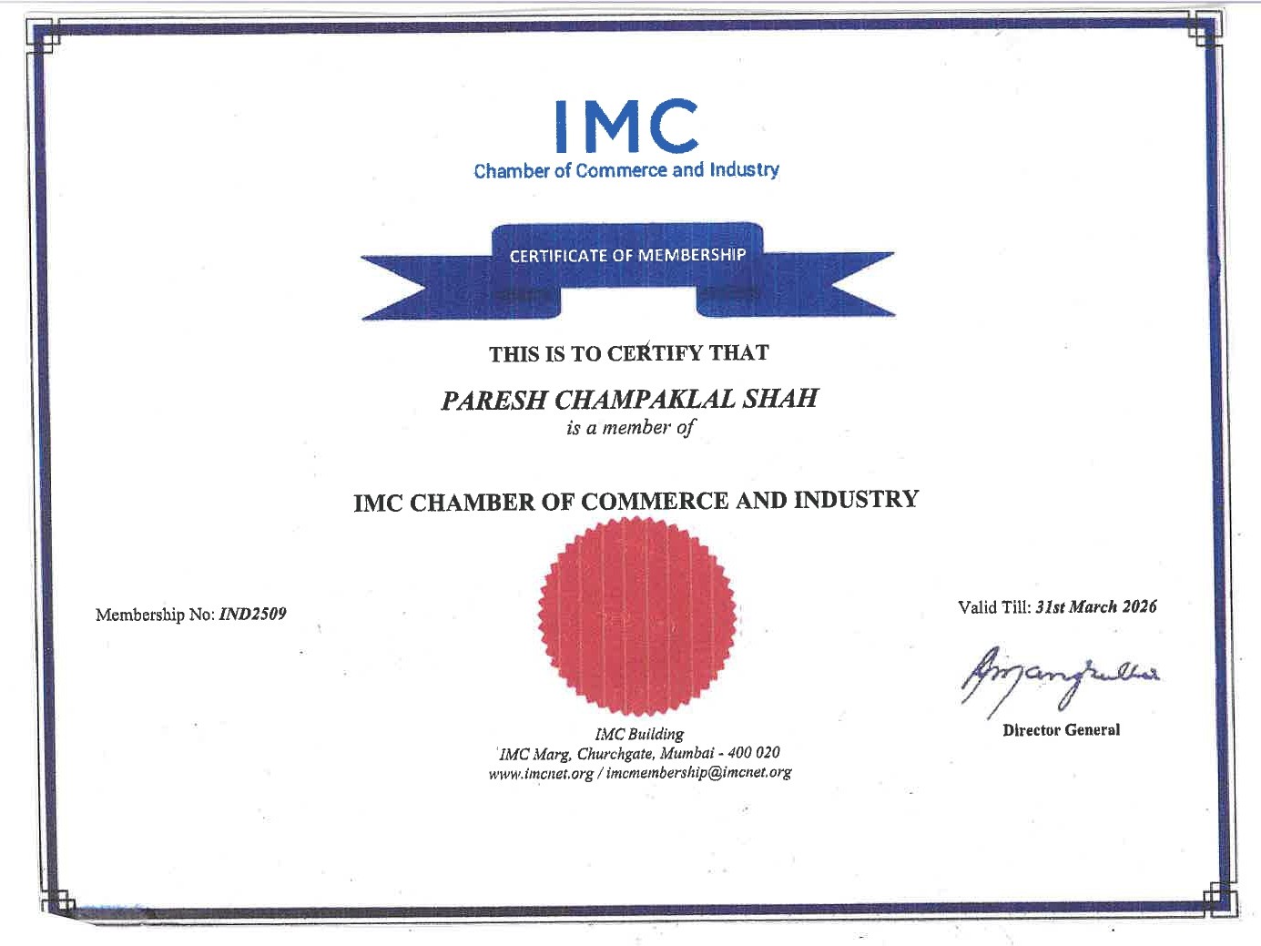 6, Affinwala Building, 292 S.B.S Road, Fort, Mumbai – 400001 Maharashtra, India.